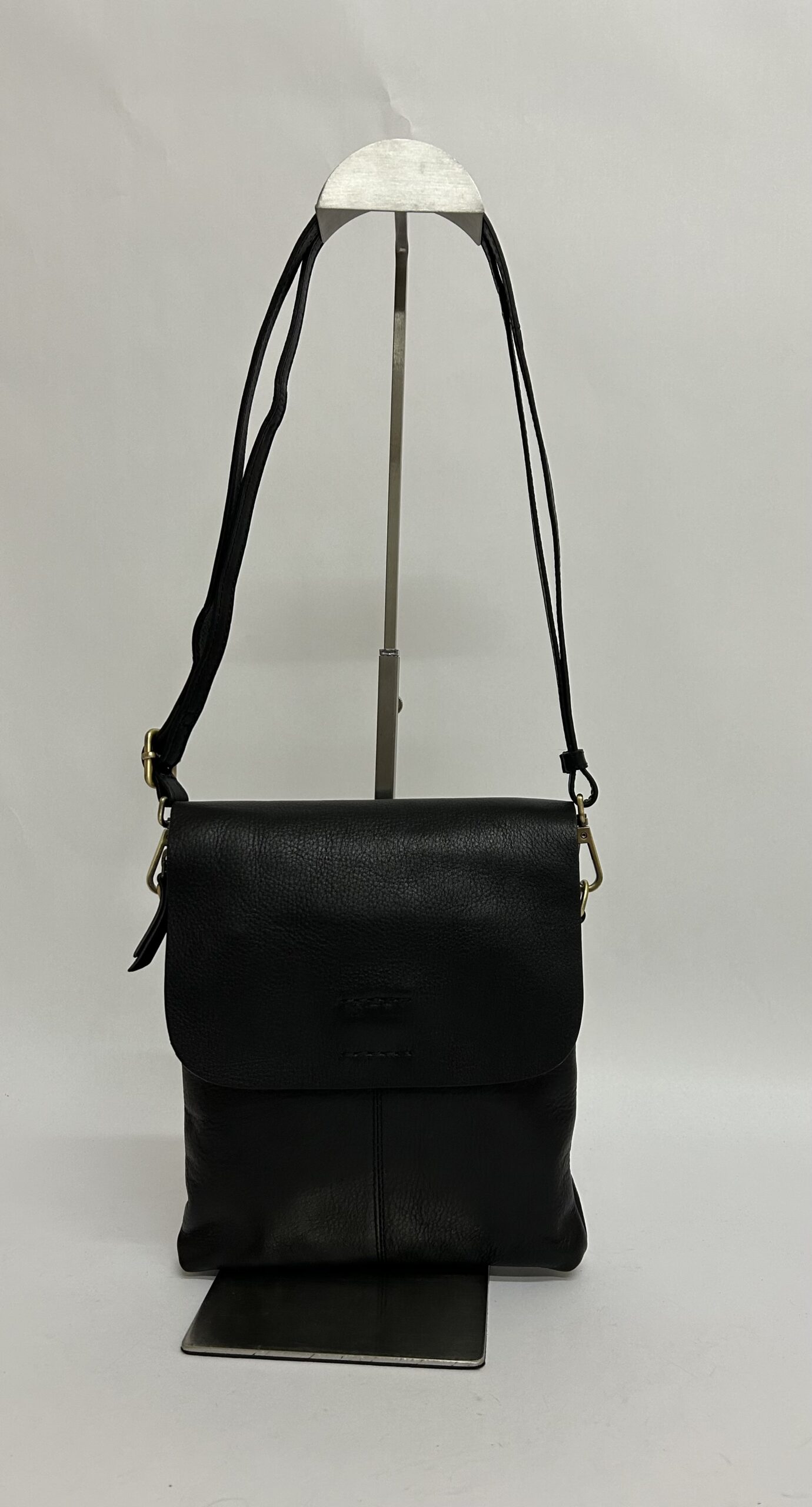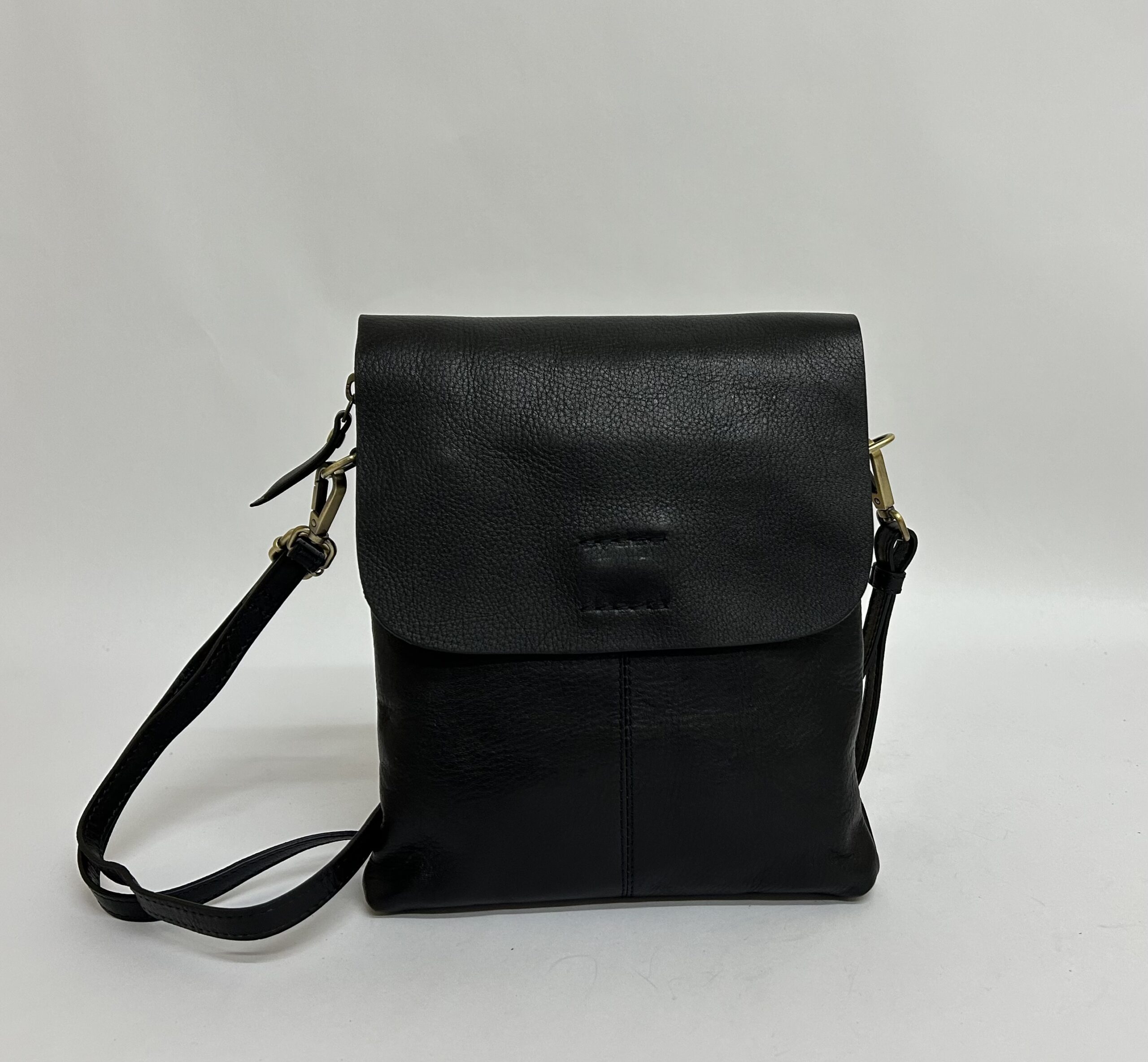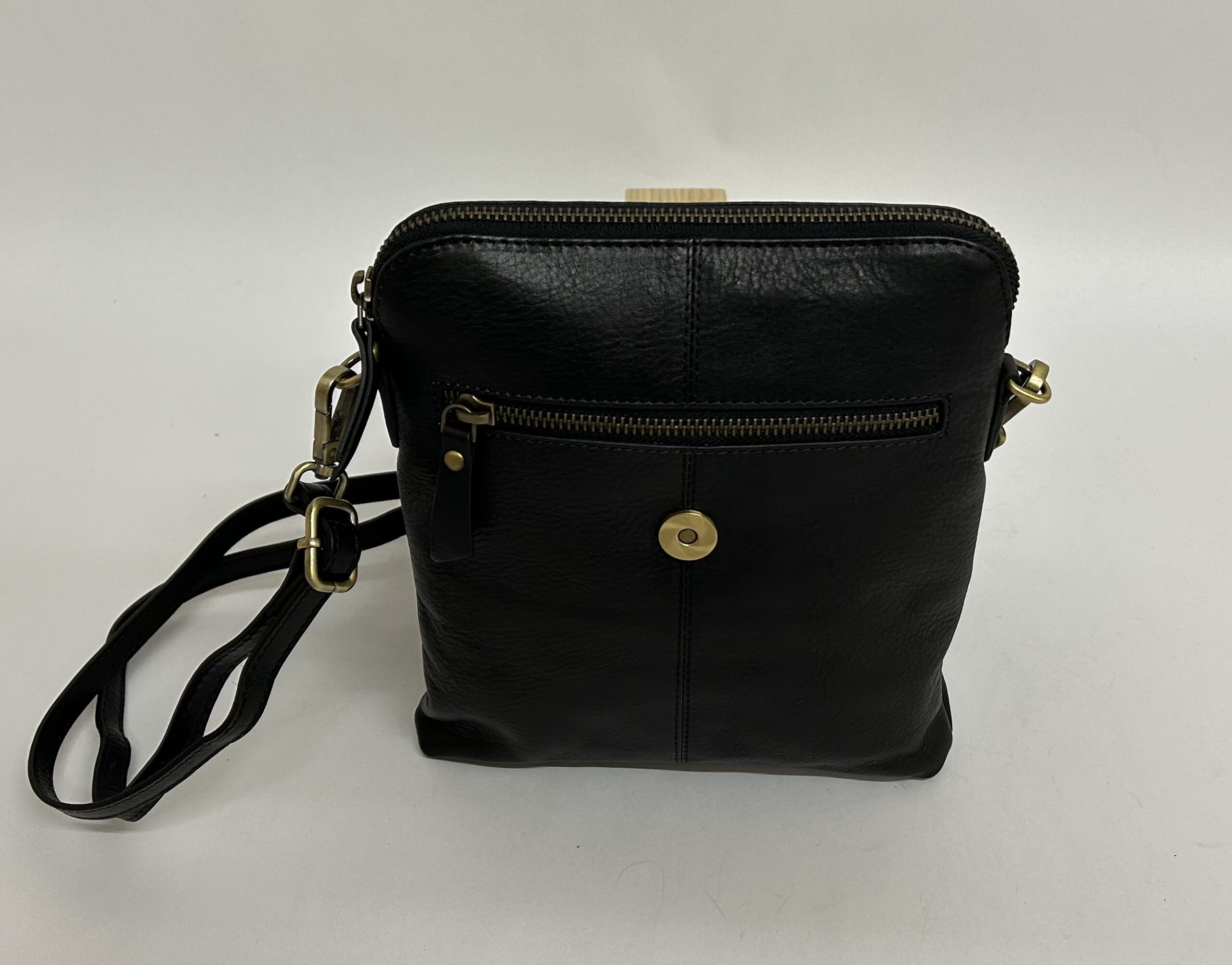 Petite satchel, zip top under the magnetic flap, back outside pocket, card slots.
